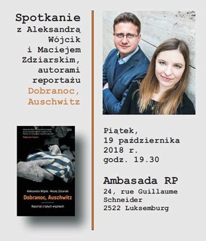 Przypominamy, że w najbliższy piątek o godz. 19.30 odbędzie się w Ambasadzie RP w Luksemburgu spotkanie z Aleksandrą Wójcik i Maciejem Zdziarskim, autorami książki „Dobranoc Auschwitz”.