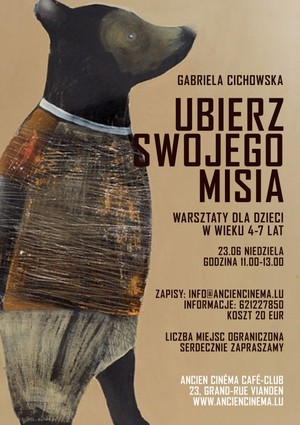 W niedzielę 23 czerwca w godz. 11.00–13.00 odbędą się w Ancien Cinema w Vianden warsztaty artystyczne dla dzieci w wieku 4–7 lat. Warsztaty poprowadzi Gabriela Cichowska – autorka prac, które w tym samym czasie obejrzeć będzie można także w Ancien Cinema.